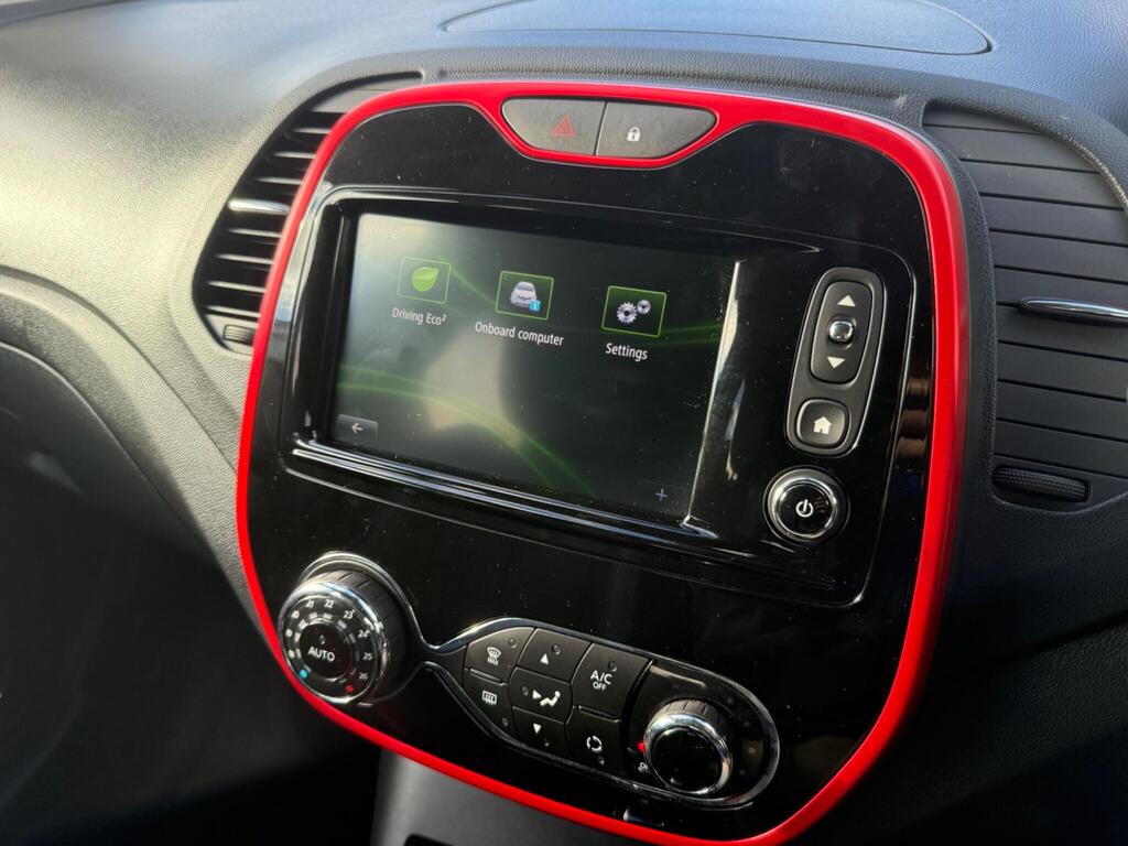 12V Power Socket, 17in Alloy Wheels - Explore Black, ABS with EBA - Emergency Brake Assist, Airbags - Front Passenger Deactivation, Automatic Headlights and Rain Sensitive Front Wipers, Body Coloured Parking Sensors - Rear, Bumpers - Body Coloured, Chrome Exterior Gloss Pack, Climate Control with Air Quality Regulator and One Touch Demist Function, Closeable Storage - Dashboard - 1.6L, Cruise Control with Speed Limiter, Daytime Running Lights - LED, Deadlocking, Door Armrest - Black Gloss, Door Handles - Body Coloured - Front, Door Mirrors - Electrically Operated - Heated - Folding, Door Mirrors - Roof Coloured Housings, Door Sill Plates - Captur, Driver Lateral Head-Thorax Airbag, Driver and Passenger Front - Side Airbags, EBD - Electronic Brake Distribution, ESC - Electronic Stability Control, Eco Mode, Electric Windows - Front with Anti Pinch and One Touch Control, Electric Windows - Rear, Electrochromatic Rear View Mirror, Extra Tinted Windows - Rear and Tailgate, Fog Lights with Cornering Function, Front Door Storage Compartment - 1.5 ltr, Front and Rear Seat Belt Undone Warning Audible Alert, Grip Xtend Advanced Traction Control, HSA - Hill Start Assist, Handsfree Keycard with Push Button Start-Stop Function, Headlights - Chrome Surround, Headrests - Front Height Adjustable - SRP - System for Restraint and Protection, Headrests - Rear x3, Heating System with Pollen Filter, ISOFIX Child Seat Fixing Points on Front Passenger and Rear Outermost Seats, Interior Touch Pack - Red Gloss, Leather Steering Wheel and Gear Knob, Lower Door Protector - Black Grain, Painted Front and Rear Lower Bumpers, Painted Roof - Diamond Black, Pedals - Aluminium, RAID - Renault Anti Intruder Device, Rear Door Storage Compartment - 0.5L, Rear Parking Camera, Rear Wiper, Remote Central Locking with Thatcham Approved Immobiliser - Thatcham Cat 2, Removable Storage between Drivers and Passenger Seat, Renault Diamond Logo on Front Face - Rear Face - Wheels, Reversible Boot Floor, Safety Lock - Rear Doors, Seats - 60-40 Split Folding Rear, Seats - Drivers Height Adjustment, Seats - Front Heated, Seats - Shell-Shaped, Skid Plates - Front and Rear, Small Storage Area by Gear Stick for Phone-Keys, Space Saver Spare Wheel, Split-Level Boot Floor, Steering Wheel - Height and Reach Adjustable, Storage - Front Glovebox, Storage Between Front Seats, Storage Nets on Rear of Front Seats, Storage Space for 1 Cup and Miscellaneous Items near Handbrake, Sunglasses Holder, Techno Pack, Trip Computer, Tyre Pressure Warning Light, Variable Power Assisted Steering - Electrical, Windscreen Wipers - Variable Speed