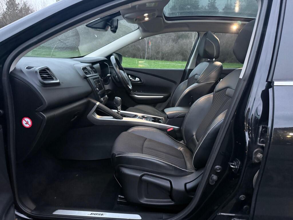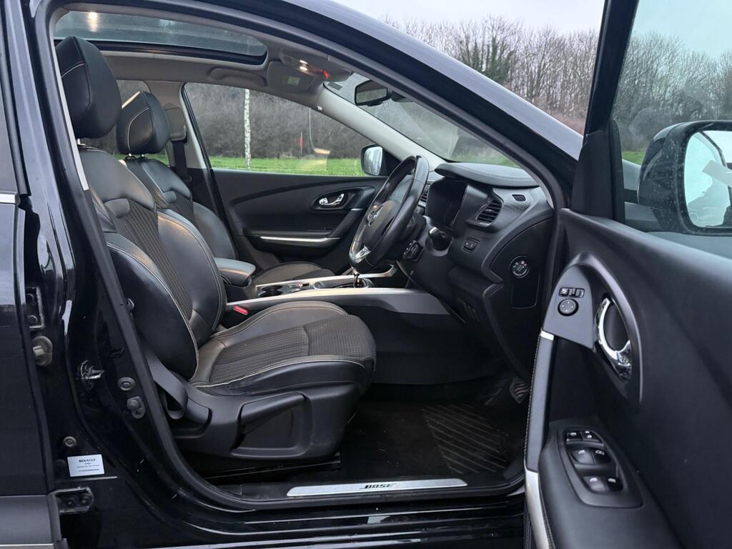 Leather - Carbon Black, 19in Alloy Wheels - Diamond Cut - Zeus, 3 Point Inertia Reel Seatbelts, ABS with EBD - Electronic Brake Distribution and Emergency Brake Assist, Accessory Power Point, Adjustable Dashboard Illumination, Air Recirculation, Airbags - Drivers Two Stage Auto Adaptive, Airbags - Front Lateral, Airbags - Front Passenger Deactivation, Airbags - Front Passengers Two Stage Adaptive, Airbags - Front and Rear Curtain, Android Auto, Anti-Drill Door Locks and Ignition Barrel, Apple CarPlay, Armrest - Front Centre, Assisted Parking Brake, Automatic Headlights and Windscreen Wipers, BOSE Energy Efficient Sound System, Body Sided Moulding with Chrome Insert, Central Rear Armrest with Cup Holders, Chrome Detailing, Chrome Window Surrounds, Climate Control - Automatic Dual Zone, Climate Pack, Convenience Pack, Courtesy Lights - Rear, Cruise Control with Speed Limiter, Daytime Running Lights - LED, Display - Digital Speedometer - 7in TFT Screen, Door Handles - Body Coloured - Front, Door Mirrors - Body Coloured Shell, Door Mirrors - Electrically Operated - Heated - Folding, Door-Boot Open Warning Light, Driver and Passenger Seat Belt Undone Warning Audible Alert, Dust Protection Kit, ESP - Electronic Stability Programme with ASR - Anti-Skid Regulation and UCL - Understeer Logic Control, Eco Mode, Electric Windows - Front, Electric Windows - Rear, Electrochromatic Rear View Mirror, Electronic Parking Brake, Exterior Temperature Sensor, Extra Tinted Windows - Rear and Tailgate, Fingertip Audio System Remote Control, Fleet Management, Fog Lights with Cornering Function, Front and Rear Skids, Front and Rear Towing Rings, Full Flat Floor, Glovebox Light, Gravel Protection Kit, HSA - Hill Start Assist, Headlights - Full LED, Headrests - Front Fully Adjustable, Headrests - Rear Height Adjustable x3, Heated Rear Windscreen, Heating Ducts to Feet of Rear Passengers, Height Adjustable Front Seat Belts, ISOFIX - Child Seat Fixing Points - Outer Rear Seats, Indicators with Side Repetitions, Insurance Approved - Category 1 Alarm System and Immobiliser, Integrated Fuel Filler Cap, Interior Courtesy Light Controlled By All 4 Doors, Keycard - Hands Free, Low Fuel Level Warning Light, Luggage Compartment - Illumination, Multi Position Trunk Floor, Oil Level Gauge, Panoramic Sunroof, Parking Sensors - Front and Rear, Passenger Height Adjustment Seat, Pollen Filter, Power Assisted Steering, Protective Rear Brake Disc, RAID - Renault Anti Intruder Device, Rain Protection Kit, Reading Lights - Driver and Front Passenger, Rear Seat Belt Undone Warning Audible Alert, Rev-Counter, Roof Rails, Satellite Navigation - R-Link v2 System, Seats - 3-Seat Rear Bench, Seats - 60-40 Split Folding Rear, Seats - Drivers Height and Lumbar Adjustment, Seats - Height Adjustable Front Seatbelts with Double Pretensioners, Seats - One Touch Easy Folding Rear Bench, Side Impact Protection Bars, Side and Boot Kick Plates, Signature Nappa Leather Steering Wheel, Steering Wheel - Rake and Reach Adjustable, Sun Visor - Mirror With Light, Superlocking, Trip Computer, Tyre Inflation Kit, Tyre Pressure Monitoring System, USB Connection, Visio System, Windscreen Wipers - Front with Variable Speed Adjustment, Windscreen Wipers - Rear